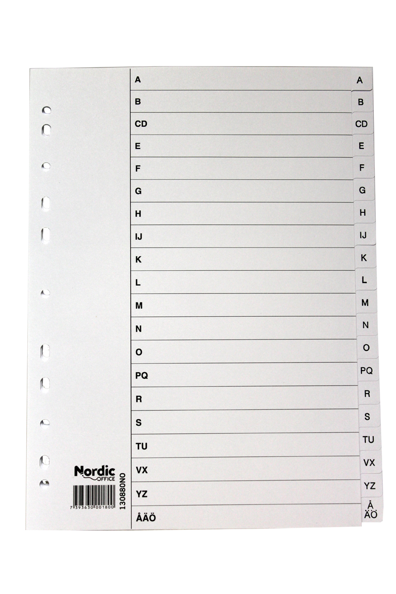 Kartonkirekisteri A4, valkoinen Mitat: 225x4x297 mm Hakusanat: Kansion välilehdet, kansion välilehti, hakemisto, aakkostaja