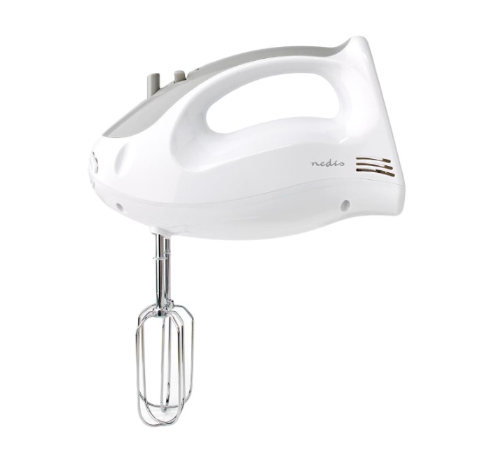 Nedis sähkövatkaimessa on viisi nopeusasetusta ja turbotoiminto. Poistopainikkeen avulla vispilöiden irrottaminen on helppoa. Vispilät on helppo puhdistaa pesukoneessa.