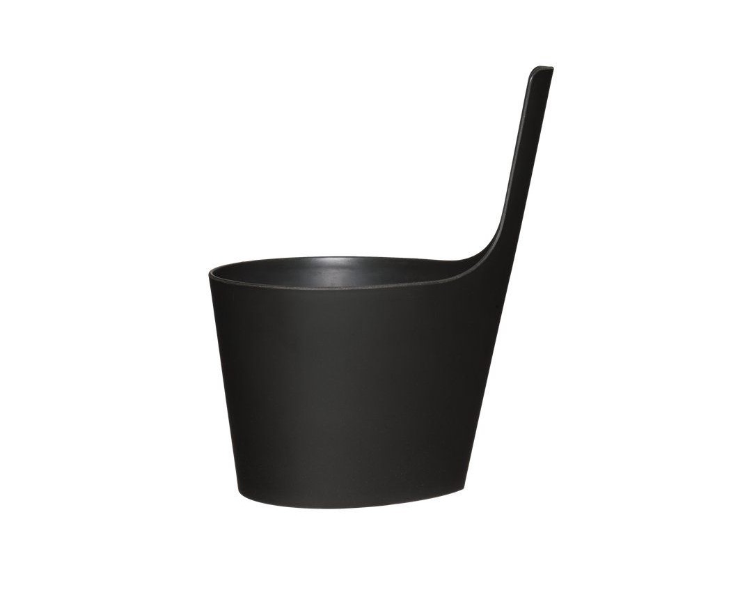 Pisaran muotoa toistava biokomposiitista Suomessa valmistettu saunakauha. Muotoiltua vartta pitkin löylyvettä voi myös valuttaa kiukaalle.