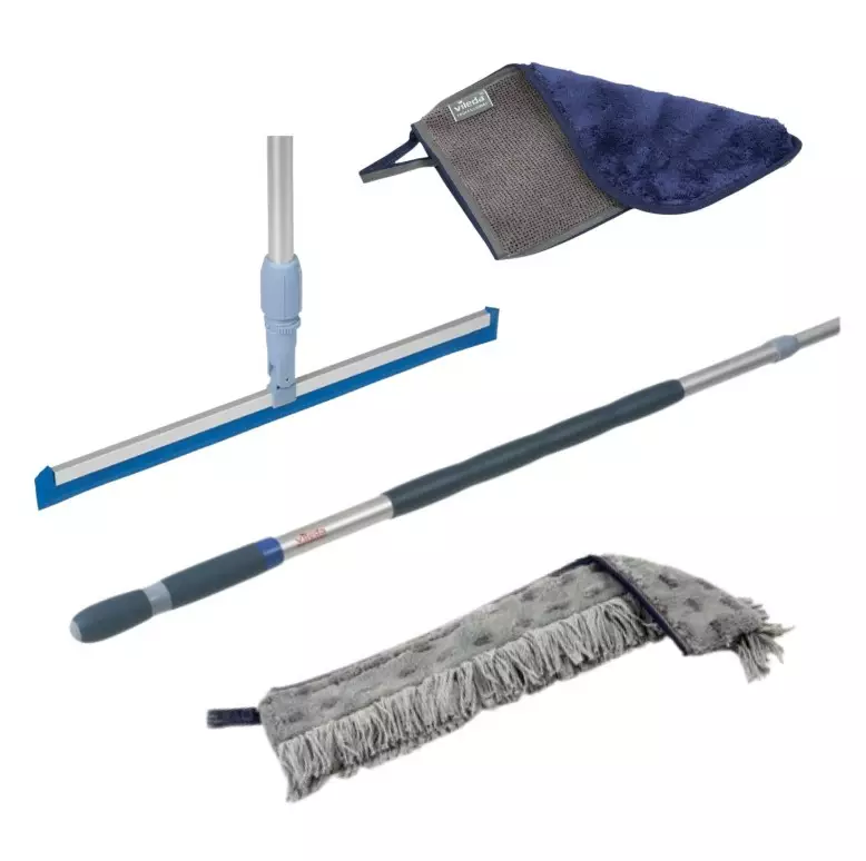 Teräväkuivaimen päälle pujotettava kuivainmoppi on erinomainen apuväline ahtaiden paikkojen sekä ahtaasti kalustettujen tilojen sekä seinä- ja kattopintojen puhdistukseen.