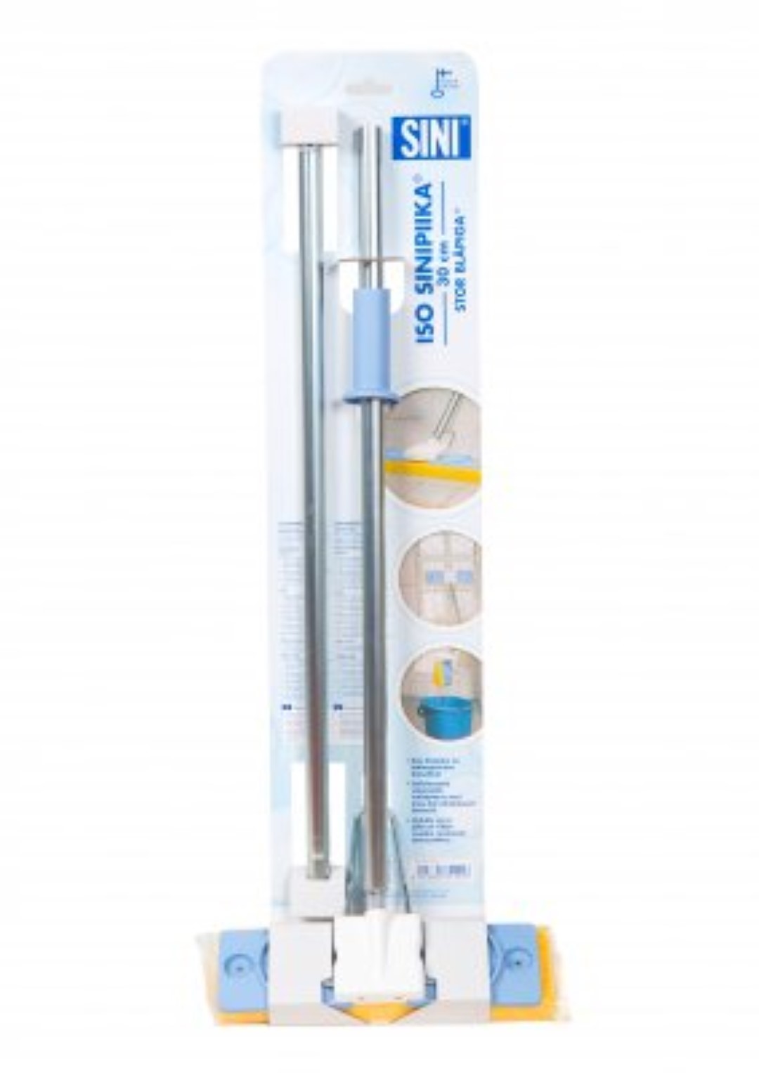Sinipiiassa on sinkitty varsi, jolla on viiden vuoden ruostumattomuustakuu. Selluloosasta valmistettu vaihdettava sieni imee lian itseensä, eikä työnnä sitä edellään.