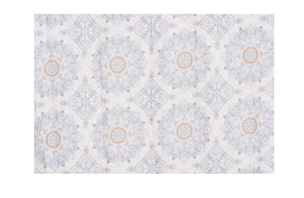 Kuviollinen suihkuverho. Suihkuverho suojaa kylpyhuoneen kalusteita ja pintoja roiskeilta. Mukana 12 kpl ripustuskoukkua. Koko 180 x 200 cm. Väri harmaa-keltainen. Materiaali polyesteri. Pesu 30 astetta.