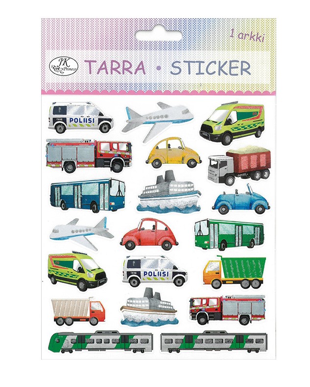 Lajitelma erilaisia tarroja askarteluun ja koristeluun.