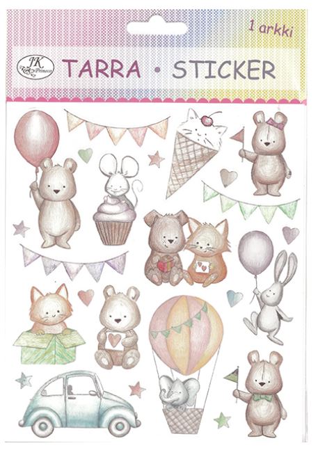 Lajitelma pehmoleluaiheisia tarroja askarteluun.