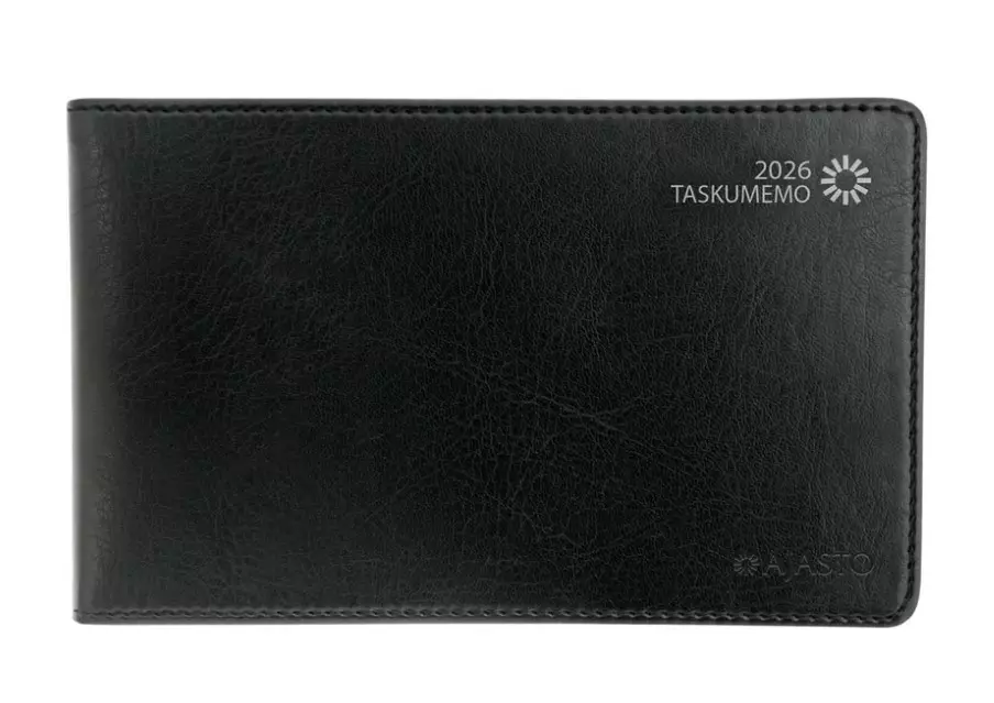 Koko 148 x 90 mm; leatherette-kannet; sidottu; kielisyys: suomi, ruotsi; aukeamalla viikkonäkymä vaakana; päiväkirja 49/2025–1/2027; vuosisuunnitelmat 2026 ja 2027; kansalliset vapaapäivät; suomalaiset ja suomenruotsalaiset nimipäivät; liputuspäivät Suomessa; vuosiruudukko; välimatkataulukko; kiinteä puhelinmuistio; FSC®-sertifioitu tuote.