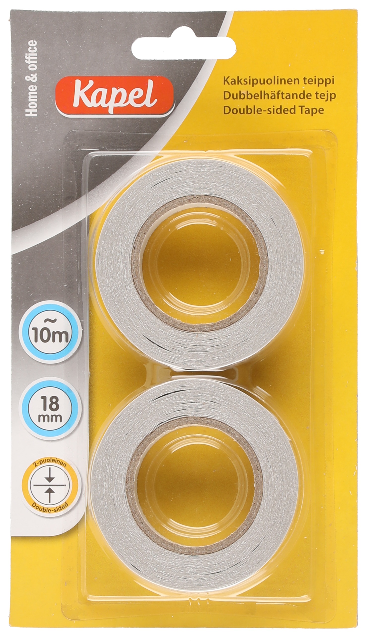 Leveys 18 mm. 2 x 10m. Kaksipuolinen teippi. Kätevä tuote esim. valokuvien kiinnitykseen albumiin.