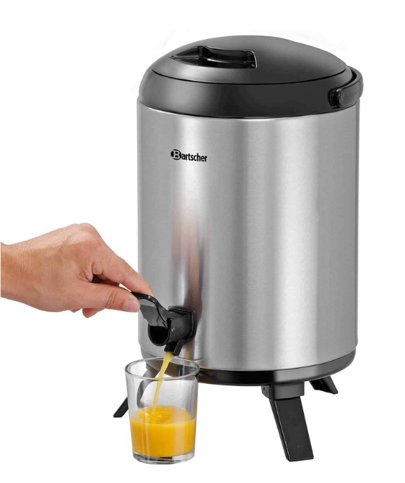 Hanallinen termossäiliö sopii sekä kuumille että kylmille juomille. Jalat voidaan taittaa alle.