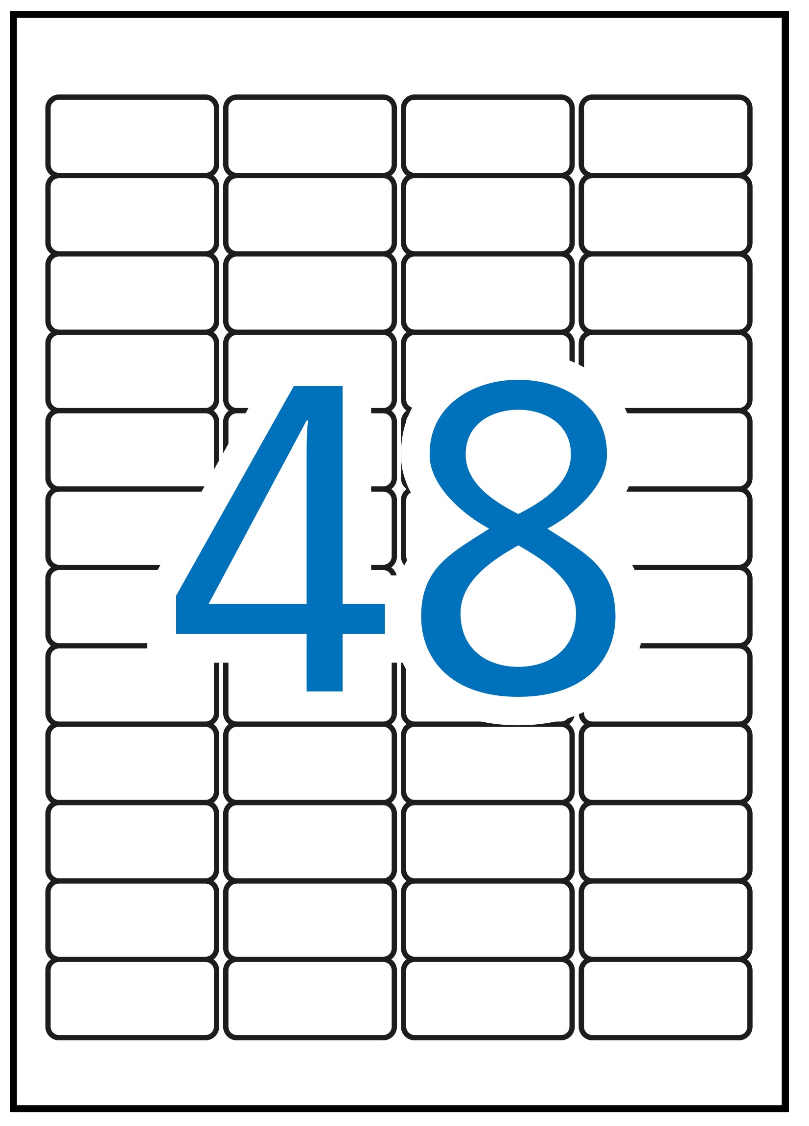 - A4 arkki on jaettu 48 tarraan, joiden mitat ovat 45,7 x 21,2 mm.