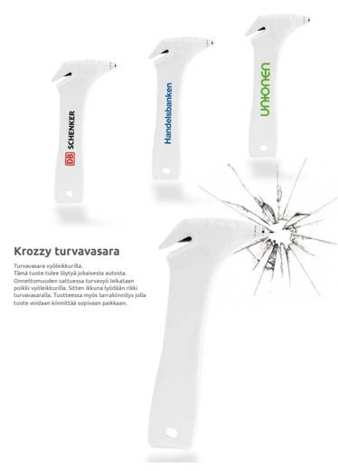 Painata turvavasara liikelahjaksi yrityksesi logolla! Turvavasara vyöleikkurilla. Tämä tuote tulee löytyä jokaisesta autosta! Onnettomuuden sattuessa turvavyö leikataan poikki vyöleikkurilla.... Lue lisää