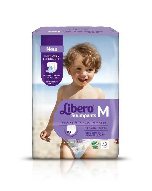 Libero Swimpants -vaippa on pehmeä ja myötäilevä housuvaipan mallinen, kertakäyttöinen uimavaippa, joka sopii 10-16 kilon painoisille lapsille.