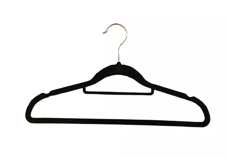 Samettipintaisella henkarilla kevyetkin puserot pysyvät valumatta. Hakusanat: hengari, henkari