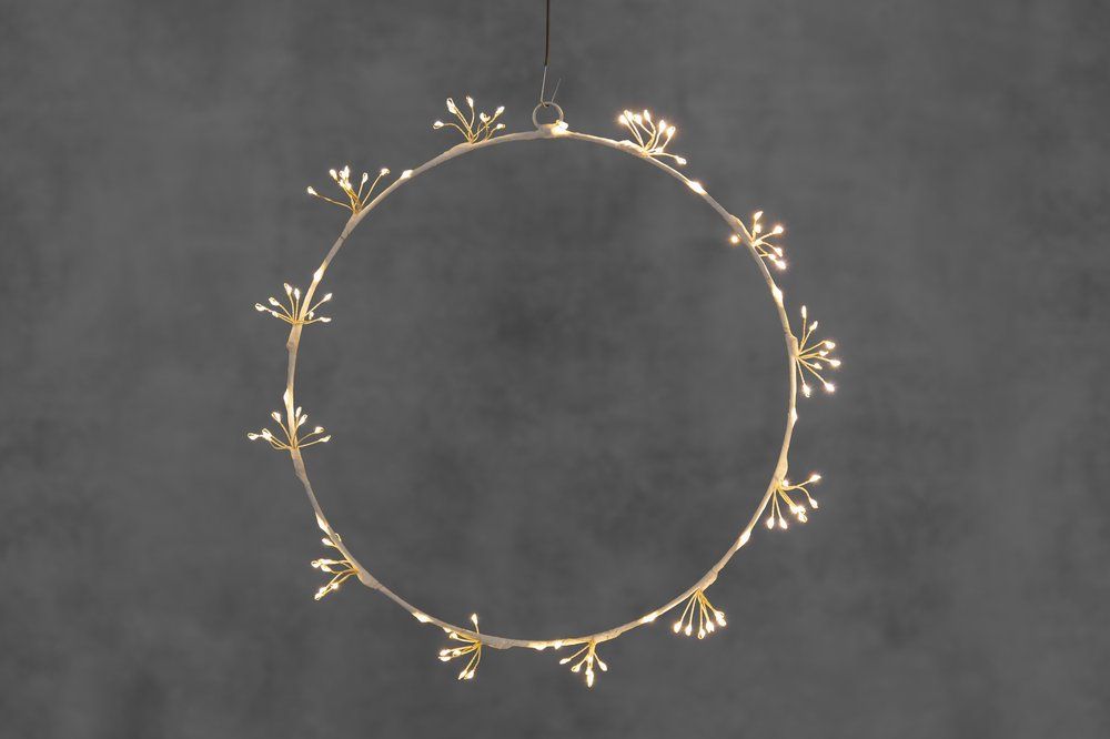 Kaunis valokranssi luo tunnelmaa pimeviin iltoihin. Sopii myös kattauksiin.