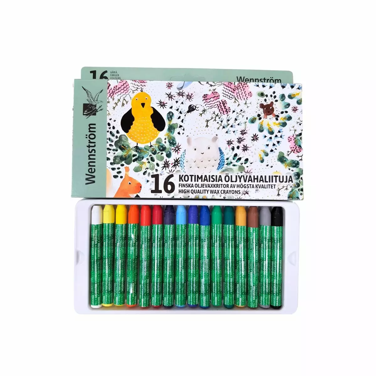 - Laadukkaat öljyvahaliidut 16 värin rasiassa.