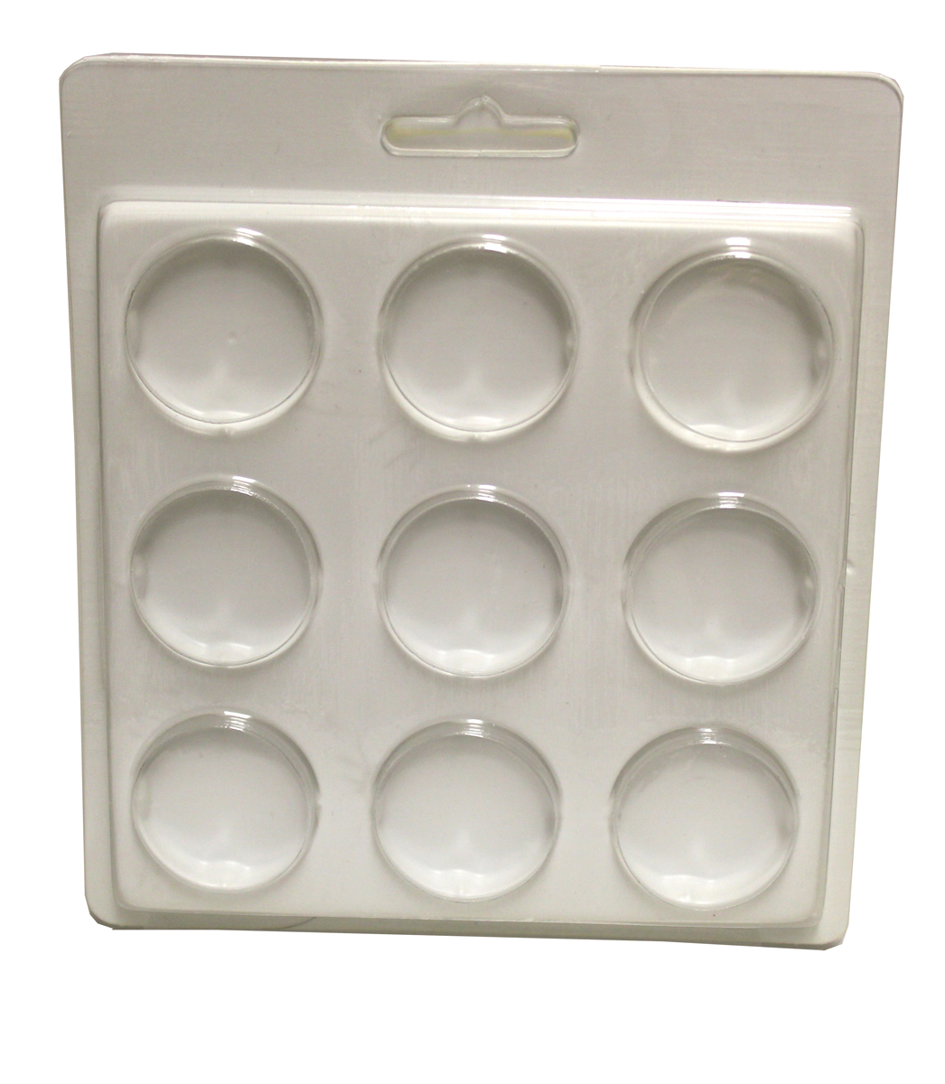 Tyhjä muovinen pohja, johon voit kerätä 9 kappaletta vesivärinappeja haluamissasi väreissä.